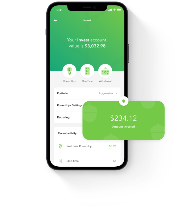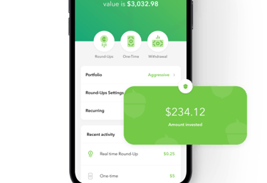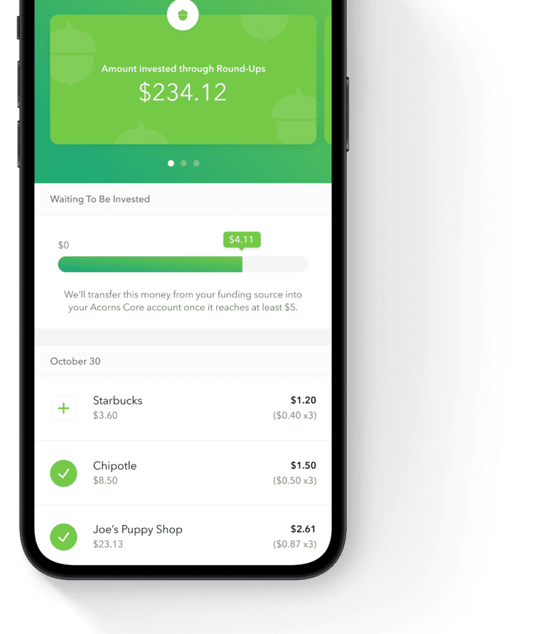 Every time you make a purchase, Acorns rounds up the amount to the nearest dollar and invests the spare change.